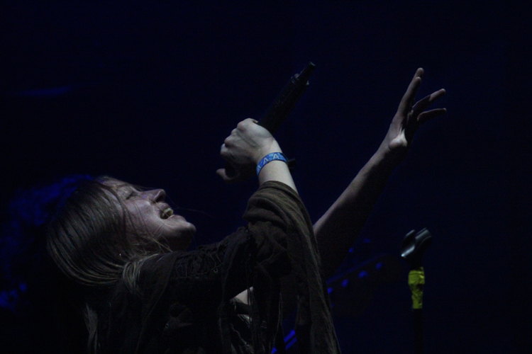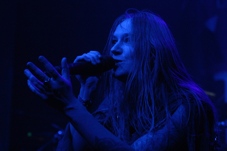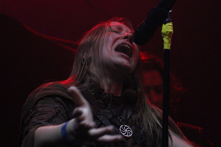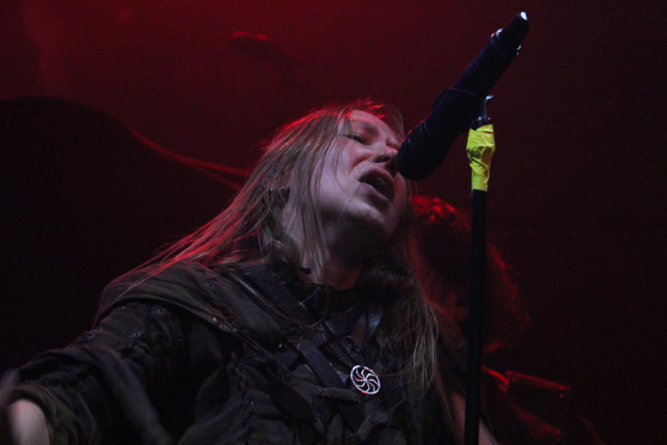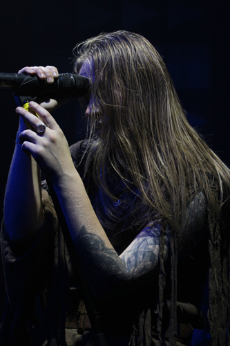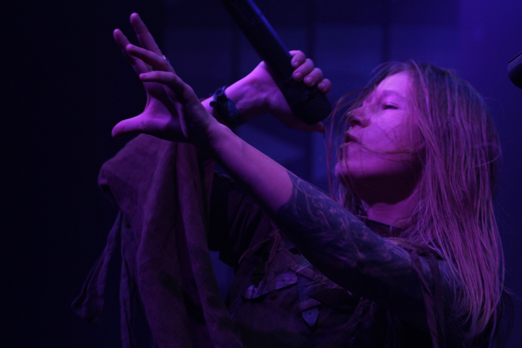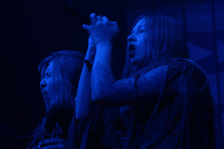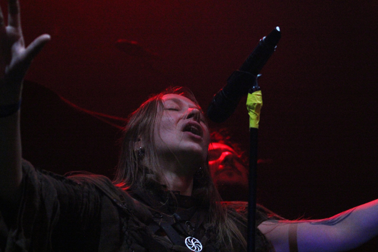 Arkona Live at The Regent Theater Los Angeles, CA November 19th, 2016 Review and Photos by Travis Baumann Arkona return to Los Angeles before the end of the year, bringing with them their signature brand of Pagan Folk Metal that stands out from the rest of the pack in that they hail from Russia, and they are one of the few Pagan Metal bands to feature a woman as lead singer. The band centers around founder and primary song writer, Maria "Masha Scream" Arkhipova. She is a talented artist that varies between harsh growled vocals and beautiful ethereal singing, usually in the same song. Their lyrics are all in their native tongue, and are based on Russian folklore and Slavic mythology. What is amazing is that even though they are worlds apart from other "old world" music, some of their traditional song structures and instrumentation can at times bring to mind ethnic styles such as Native American chants or Medieval European melodies. For a decade and a half, this team of modern minstrels have been conjuring other times and places with their eclectic and layered sound. Live they consist of Masha on vocals of course, and she is joined by her husband Sergei "Lazar" Atrashkevich on guitar, Ruslan "Kniaz" Rosomaherov on bass guitar, Vladimir "Volk" Reshetnikov on bagpipes, lutes, and ethnic wind instruments, and relative new comer, Andrey Ishchenko on drums. I have seen Arkona numerous times over the years since first learning about them through their involvement with the long-running Paganfest tours. I am still always impressed by the energy and emotion that Masha invokes with her music. You can see it affecting her as she sings each tale, and that outpouring of emotion resonates with the audience in a way many bands struggle to achieve. The traditional instruments lend an earthy weight to the songs, but there are plenty of modern layers of keyboard orchestration, riffing guitars, and moving rhythms that build a perfect hybrid of folk and contemporary Symphonic Metal. My favorite songs are the ones where Masha focuses equally on the harsh and melodic vocals styles. In fact my all time favorite song of theirs, "Zakliatie", starts out with very little instrumentation, and is mostly her chanting in a way reminiscent of the aforementioned Native American style of singing, so I was really happy to get to see it live on this evening. Their set time was a bit shorter than normal as they had been headlining the last few times through the country but on this evening they had joined forces with an amazing roster of bands such as Canadian heavy hitters, The Agonist, Fleshgod Apocalypse from Italia, and the amazing Dutch Symphonic Metallers, Epica. Despite only having a short time on stage, they played favorites from throughout their seven album catalog including material from their latest release, "Yav". All the other bands of the night also featured female singers in some capacity, but they were the only Folk Metal band. I think they may have picked a few more songs with her melodic vocal style for this show which worked well as an introduction to audience members not previously familiar with them that came for the headliner, Epica which features a melodic operatic style of singing. Overall, I really love Arkona and they did not disappoint on this occasion. Masha's energetic delivery, constantly moving around the stage and trashing about, kept the audience enthralled as she showed two very different sides to her as an artist. On the one hand you have this violent, aggressive woman warrior and on the other, there is the beautiful girl in touch with nature and emotion and pulling on your heart strings. Arkona have gained a reputation as one of the very best Pagan Folk Metal bands the world over and there is very good reason... they are. |