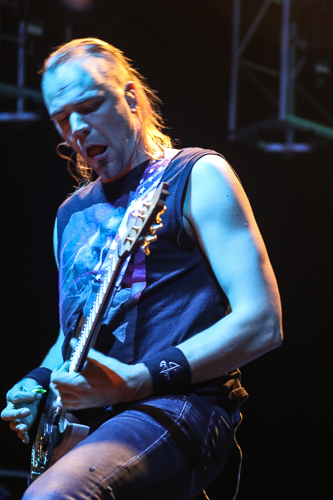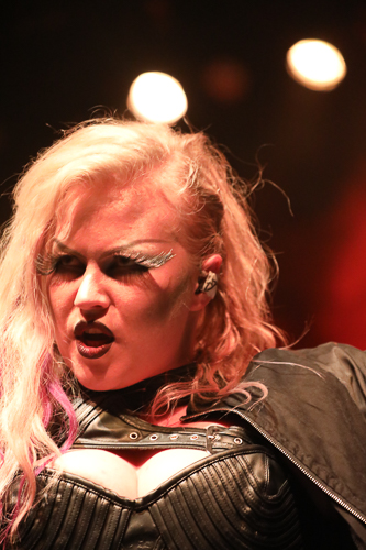 Battle Beast Live at The City National Grove Anaheim, CA May5th, 2018 Review and photos by Travis Baumann Finland's Battle Beast return to North America almost one year to the date from their previous tour, and it could not be soon enough. First-up on an amazing triple lineup including Delain and Kamelot, they kicked off what would be a fantastic night of metal music. Fronted by powerhouse singer, Noora Louhimo, they represent anthemic power metal at its strongest. Janne Björkroth lays down a symphonic layer of keyboards with Juuso Soinio and Joona Björkroth building up the driving guitars that make up their signature sound. The heavy end and perucussion are handled by Eero Sipilä on bass guitar and Pyry Vikki on drums respectably. All the gentlemen add their voices for the backing vocals, which creates a male choral effect for extra gravitas and power... the definition of power metal. They kicked off the set with "Straight to the Heart", which gets straight to the point. Aggression meets melody in full impact and lays down the essance of their agenda: the juxtaposition of fortitude, passion, and compassion - often with a tragic circumstance and a heavy-duty execution. They followed up with the title track from their latest album, "Bringer of Pain" and had the audience enthralled. They moved to one of their more tragic songs with "Familiar Hell" before moving from their latest album to their self-titled debut for "Black Ninja". This is definitely one of their more cheesy efforts but is still a lot of fun. Moving from fun to extremely serious, they played one of my favorite songs of theirs, "Lost in Wars". It really takes a cosmic microscope to humanity's plight in the universe: we are our own worst enemy. This song really borders on goth metal with its intensity and I love it. Playing the only song from their sophomore effort, "Unholy Savior", they gave us "Touch in the Night". This song sets up a fantasy tale that would be right at home in Game of Thrones. I really love this album and wish they had more time to delve into additional songs from it like "I Want the World... and Everything In It", "Speed and Danger", and especially the title track. Moving back to "Bringer of Pain" they did "Bastard Son of Odin" which is pretty much a straight up biker anthem but could be about a Viking enclave as well, which is personally what I like to imagine when I listen to it. They played the single from the latest album, "King for a Day" which depicts the global corruption of government and the callousness with which the powerful go against the good of the people they are meant to protect and benefit. A timely song to say the least and reflective of at least a handful of the world's current leaders. Closing out the amazing set they did another serious and moving song to leave the audience with: "Beyond the Burning Skies". This song is beautiful and melancholy while still being powerful and uplifting in a way that Finnish artists really seem to have perfected. I really love Battle Beast and it was great to get to see them play live two years in a row. It was an awesome night overall with so many great bands taking the stage. I can't wait for Battle Beast to come again, and hopefully as a headliner so we can hear "Unholy Savior"! |