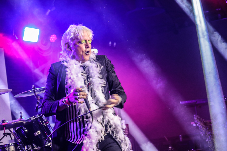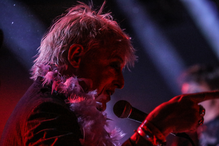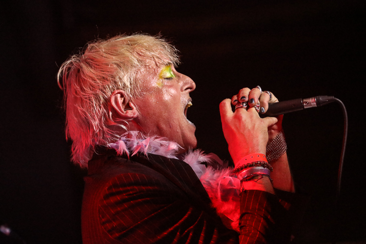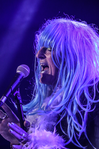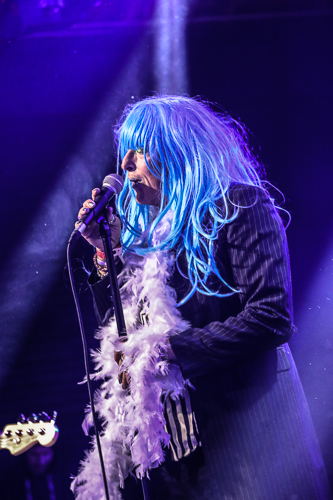 Chemlab Live at 1720 Downtown Los Angeles, CA September 29th, 2018 Review and photos by Travis Baumann Chemlab celebrated the 25th anniversary of their seminal album "Burn Out at the Hydrogen Bar" with special performances at the Cold Waves festivals across the US. Founding member Jared Louche has been involved with the industrial scene since the band's inception in 1989 and has always brought a larger than life persona to the stage when he performs. On this night he stepped out in drag wearing a long blue wig and neon makeup which he steadily shed throughout the show. They played "Burn Out at the Hydrogen Bar" in its entirety and in order starting with the introductory "Suture" feeding straight into "Codeine, Glue and You" followed by "Suicide Jag". I remember seeing them at the Roxy on Sunset when this album first came out and despite the years, Chemlab is still going strong even though Jared is the only original member. "Chemical Halo" led into "Neurozone" bringing back all the memories and ideals of the cyberpunk movement that flooded through the early nineties. Jared walked on the edge of the crowd barrier using fans' heads (and my own) as support so he could get up close and personal with the crowd. "Elephant Man" was followed by "Rivet Head" which spawned the title of zines and news groups and eventually was a common term for industrial fans in general. "Derailer" fed into the final song of the set with "Summer of Hate" during which several past Chemlab members joined the stage for a power-house finish. Jared stated that the fact that he was still alive and that they had reformed and were here tonight was due to his sobriety. He had given up all the hard drugs and hard drinking and even the lighter stuff as well. He said he was "high on life baby" and that he had never felt better. It was a great show and awesome to see Jared still doing his thing for us all to enjoy. I can't believe it has been two and a half decades since Chemlab released "Burn Out at the Hydrogen Bar". It still feels fresh and as relevant as ever, but also is a wake up call to how little we as a society and race have actually progressed in that time. |