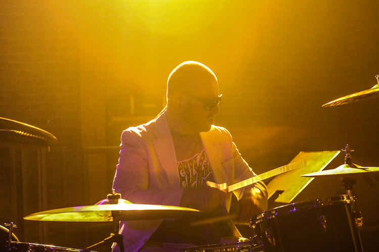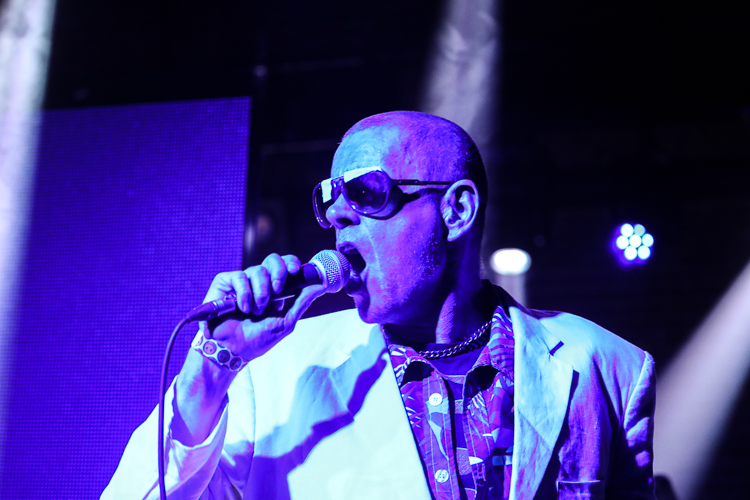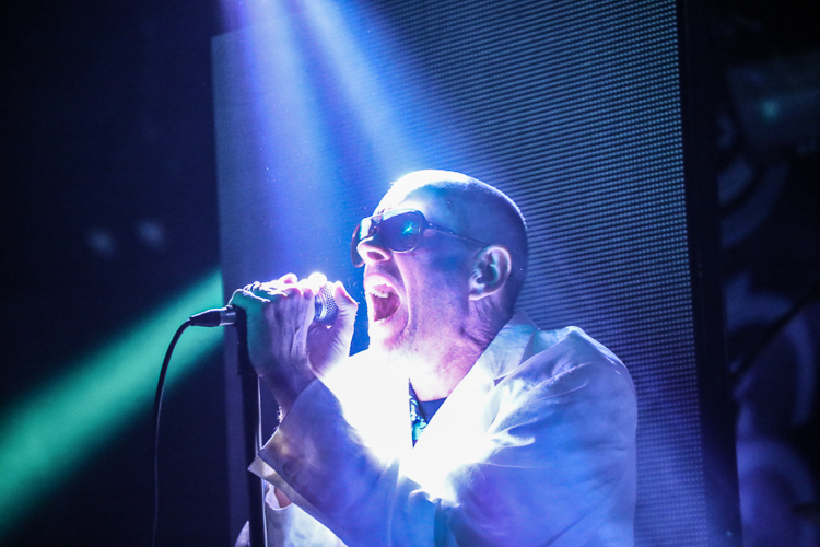 Cocksure Live at 1720 Downtown Los Angeles, CA September 27th, 2018 Review and photos by Travis Baumann Cold Waves Festival returns to Los Angeles for the second year in a row, offering three days of industrial and cold-wave acts from around the world. Cocksure is one of the premiere bands participating, and a tent pole in the first night's lineup. From the resurrection of the Revolting Cocks original lineups at last year's festival comes two of the participants with their own offshoot project. Chris Connelly of RevCo and Ministry fame along with the festival's main-man Jason "Acucrack" Novak have put together a project that is very much in the vein of Revolting Cocks but brand new material. Cocksure first started putting out albums in 2014 and just released their third full-length, "Be Rich". They kicked off the set with "Hi Talez" from their sophomore album, "Corporate_Sting". Chris' vocals still have the signature delivery from the WaxTrax! days which is the primary draw for the band. They moved to the new album for "Surgical Waste Repo Party". Jason played bass guitar and occasionally keyboards while lending his voice to the chorus. They had a live drummer with them who played a small kit on the opposite side of the stage with Chris in the center with a massive white suit on and sunglasses that looked like they had been taped together after a bar-room brawl. Revisiting "Corporate_Sting" they did "Hustler Face". At one point Chris laid down on his back on the stage and flailed his limbs like a spoiled child throwing a tantrum. "Be Rich" was released less than three weeks before this concert so received the showcase treatment it deserved. They did "Baby You, Me, and the Dark Web" and "Lotto Lout" from the album back to back. They finished up the set with two from their debut EP, "K.K.E.P." with "Assault on Cocksure 13" and closing out the night with "Guilt, Speed, and Carbon". It was a great performance, and as a long-time fan of Chris' stints with Revolting Cocks and Ministry, it was exciting to see him do new material in this style. Jason has been instrumental in revitalizing this sound and bringing it to major metropolises several years in a row now, and for that we are all grateful. |
