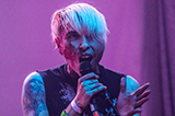 Inva//id are a Los Angeles EBM industrial hellectro band that are fairly new to the scene. They play an aggressive and dark form of danceable industrial that would be right at home in the German Darkwave/Aggrotech environment. Formed around front man Chris Rivera with electronics and percussion from Krz Souls and Brendin Ross, they also enlisted the help of a live guitarist for the show. They kicked off the festival with a solid basis for the rest of the night to unfold, pounding out the beats and layering the synths while Chris sang and screeched across the Regent's stage. |