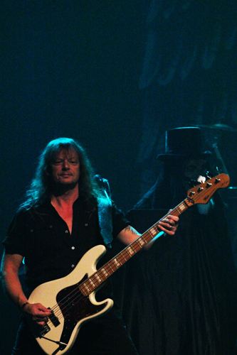 Grave Digger is focused around founding member and lead singer, Chris Boltendahl. Joining him on stage were Axel Ritt on guitar, Jens Becker on bass guitar, Stefan Arnold on drums, and underneath the Reaper outfit, playing keyboards, was Marcus Kniep.