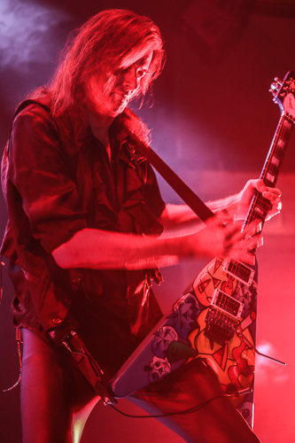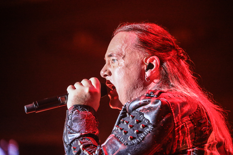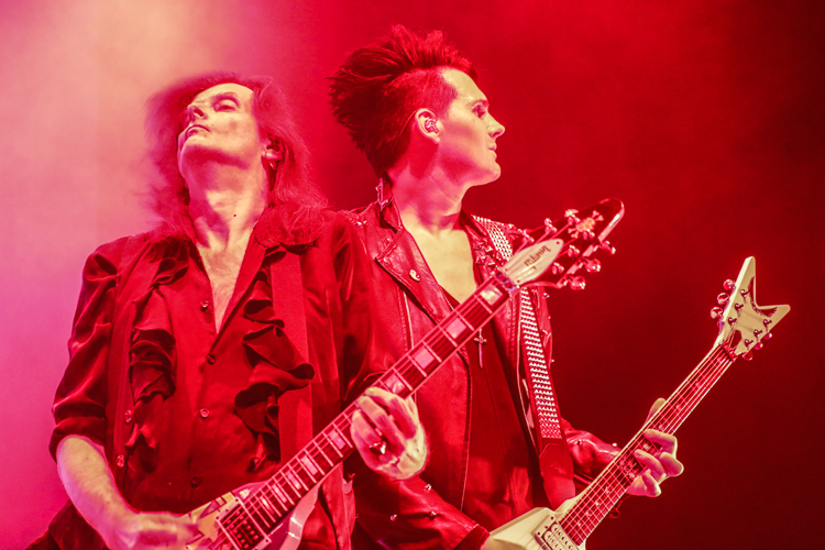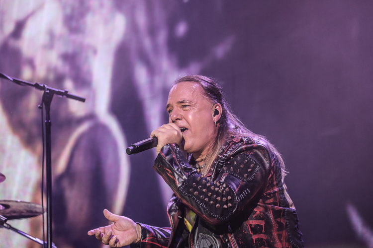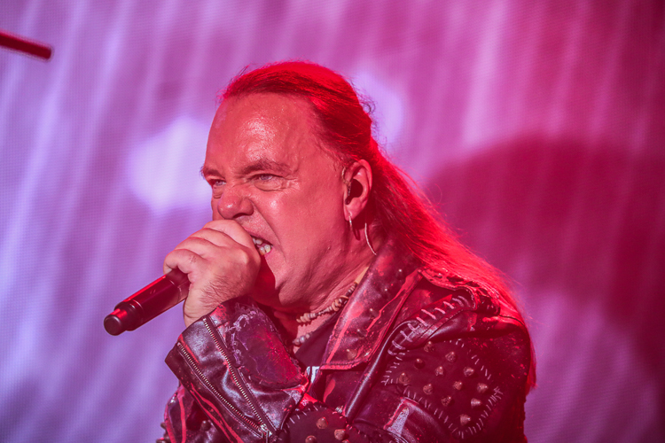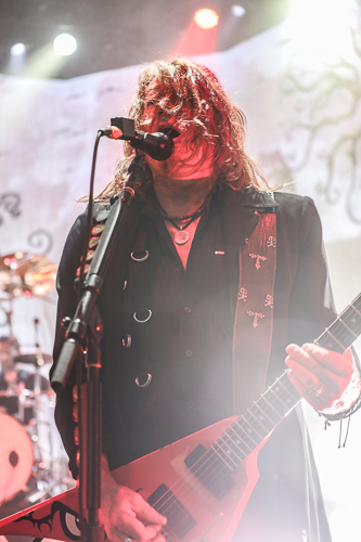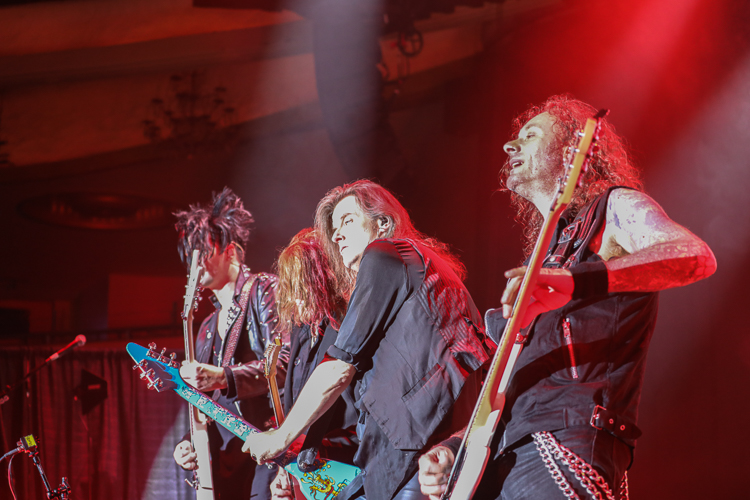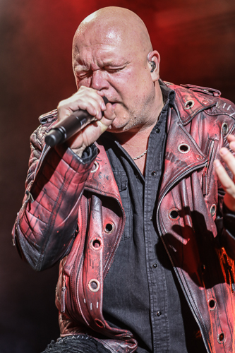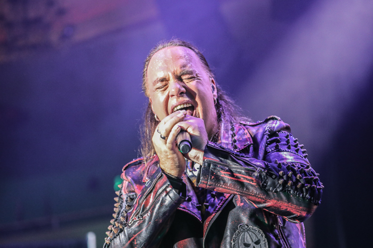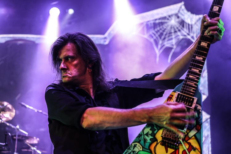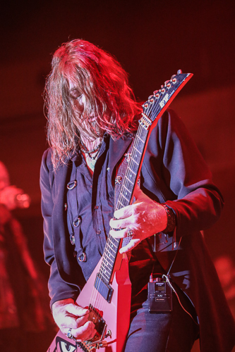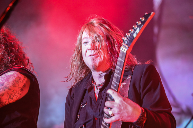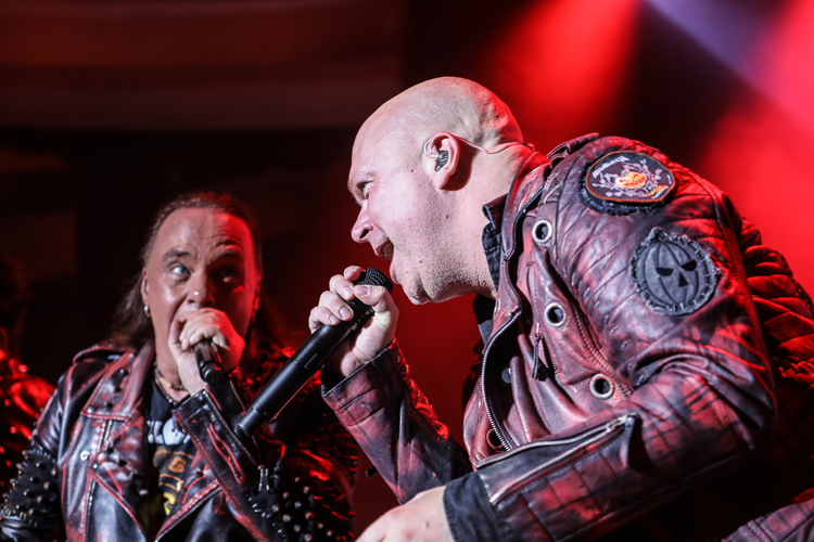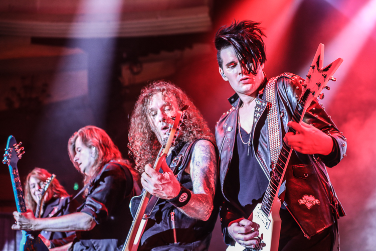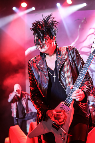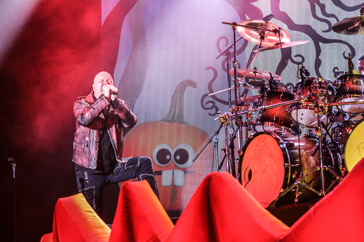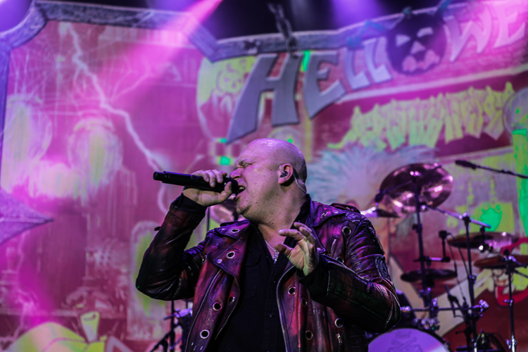 Helloween Pumpkins United Live at the Palladium Los Angles, CA September 8th, 2018 Review and photos by Travis Baumann Helloween are credited as the godfathers of the power metal sub-genre. First formed in 1984, the German heavy metal band paved new paths with their epic story-telling and blazing riffs. Their debut album "Walls of Jericho" made international waves and laid the foundation, but it was with the two part "Keeper of the Seven Keys" albums that really cemented their legendary status. Pumpkins United represents an unprecedented regrouping of all three of the vocalists from throughout their storied career coming together and presenting a complete encapsulation of the three and half decades of metal music that Helloween have carved out on this earth. For this tour their member roster would be seven strong including founding members Michael Weikath on guitar, Markus Grasskopf on bass guitar, and Kai Hansen on guitar and vocals. Joining them are the two primary vocalists throughout their history; the legendary Michael Kiske who left the band in 1993, and Andi Deris who took over for him in 1994 and now welcomes his predecessor back to into the fold. Adding to this amazing lineup are two late-comers with Sascha Gerstner on guitars who joined in 2002, and Daniel Löble on drums who came into the ranks in 2005. Helloween had no supporting acts, they were slated to put on a three hour concert delving through their entire back catalog for their devoted fans. They kicked off the set with the epic "Halloween" from the first of the "Keeper of the Seven Keys" albums. The song clocks in at nearly fourteen minutes on the album, and while they may have shortened slightly, it was a massive and amazing introduction to the show. Their stage setup was also massive, large enough to allow for seven musicians to actively move around. They had a large three panel projection screen behind the drum platform which for this opener had an enormous evil vine-type plant growth with various jack-o'-lantern characters hanging from its branches. Between each song, they had a really goofy animated segment with cartoon characters with jack-o'-lantern heads doing various things to one another which always culminated with them throwing something into a really large machine that would then lead into the next song. "Dr. Stein" from the second of the "Keeper" albums was what came out of the machine and the animation lead into goofy mad scientist tropes with bizarre inflated pumpkin characters. They sounded amazing as they went back into the far past. It brought back memories of when I first heard the album in junior high and first became a fan of Helloween. Keeping within the "Keeper" albums for the first three songs, they followed up with "I'm Alive" from the first of them. If you were an old school fan like myself, it was already an amazing set. For the first two songs Michael and Andi shared vocal duties but for this one, Michael took the spot light and it was cool to see him back with the band after so many years. Michael and Andi switched out for "If I Could Fly" from 2000's "The Dark Ride" which lead directly into "Are You Metal?" from "7 Sinners" which was the newest song of the set so far having come out in 2010. Another vocalist change and a jaunt back to 1988 brought another favorite of the set for me with "Rise and Fall" from "Keeper of the Seven Keys: Part II". The three guitarists and the bassist moved about the stage as they shredded through songs old and new and every thing in between as the vocalists either stood center stage or framed the drum platform . The animated screens showed a Jack the Ripper type character as Andi emerged with a top hat on. This led into "Perfect Gentleman" from 1994's "Master of the Rings". The next segment of the set was another highlight for me as both Michael and Andi left the stage and Kai Hansen took over the mic as they did a medley from their debut album, "Walls of Jericho" including "Starlight", "Ride the Sky" and "Judas". Kai remained the helm for one more with "Heavy Metal (Is the Law)" before tossing his Kaiser cap that he had donned off to the side of stage as Michael Kiske emerged to sing another classic, "A Tale That Wasn't Right" from the first "Keeper" album. This led into their latest output, the "Pumpkins United" from last year, which featured everyone present. Hitting the half-way point of the set, everyone except the drummer exited the stage. He proceeded to beat out an impressive drum solo that also incorporated recorded portions of the original drummer, Ingo Schwichtenberg including imagery on the screen. Ingo died tragically in 1995 when he succumbed to depression and jumped in front of a train in Hamburg. It was a fitting tribute to a founding member and a good center piece to the show. The band came back out with Michael singing two of their more somber ballads with "Livin' Ain't No Crime" and "A Little Time". As Michael handed off the mic to Andi, they kicked things up a notch moving to 2013's "Straight Out Of Hell" for "Waiting for the Thunder". Andi remained at the helm and introduced the next song as the first he wrote and sang when first joining the band in 1994, "Sole Survivor". He followed that up with "Power" from "The Time of the Oath". For the final song of the main set, Michael, Andi, and Kai all joined forces to sing "How Many Tears" from their debut, "The Walls of Jericho". As the band took a moment to recoup the audience chanted "Helloween" louder and louder until they relented and came back out. The audience had been enthralled with the experience so far but many of us were still anticipating several classic songs and a cheer when up when the first of these was revealed. "Eagle Fly Free" kicked off the first encore and sated a lot of fans' wish lists. My own personal favorite was up next with the truly epic "Keeper of the Seven Keys". This song clocks in at nearly fourteen minutes and tells a tale that combines the book of Revelations a