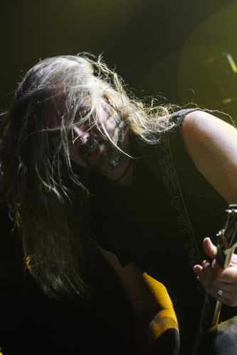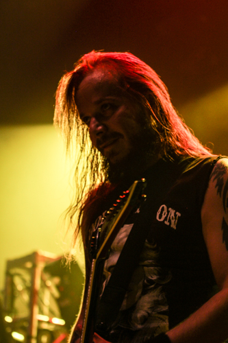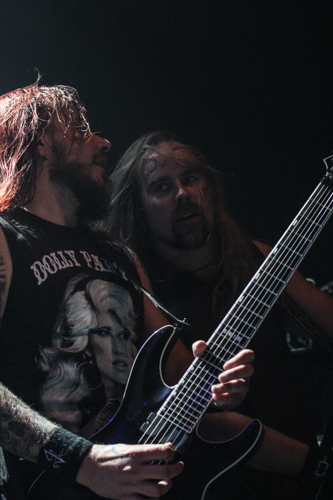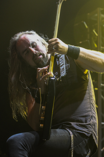 Insomnium Live at The Novo Los Angeles, CA September 15th, 2017 Review and photos by Travis Baumann Insomnium are considered a melodic death metal band but they also heavily incorporate sensibilities of progressive metal and have some tendencies towards doom, thrash, and symphonic metal as well. Hailing from Finland, their esoteric and building songs will appeal to fans of Wintersun, Katatonia, Ensiferum, and Amon Amarth. They are most like Wintersun in that they combine extreme and melodic vocal styles as well as sweeping stories that span centuries. Insomnium are made up of Niilo Sevänen on bass guitar and lead extreme vocals, Ville Friman on guitar and melodic vocals, Markus Vanhala on guitar, and Markus Hirvonen on drums. These four gentleman build a massive wall of sound with surprising intricacies and weaving narrative that blew me away. Their latest masterpiece is a conceptual album in that the song titles are all numerical chapters in the overall tale of "Winter's Gate". This marks their sixth full length release since their inception fifteen years ago. Their album titles reflect their introspective exploration of the universe, nature, sorrow, loss, and the meaning of life. A gothic melancholy can be felt purveying all of their work and instilling in it a sense of the profound mixed with beauty along with the sadness. They opened the set with "The Primeval Dark", a powerful and haunting song that instantly pulled the audience into the world of Insomnium. This song came from their second to latest album, "Shadows Of The Dying Sun". They performed "While We Sleep" from that same album, providing the same track order as the album itself to lay the tone of the concert before moving into the tale of "Winter's Gate". They proceeded to play the first three chapters of the "Gate", its epic power and hallowed stories being played out in heavy walls of guitars combined with sweeping symphonic moments and juxtaposing with detailed progressive guitar work and beautiful melodic sang passages. They parted from the story momentarily to give us a "Mortal Share" from 2006's "Above The Weeping World" which drew many cheers from the audience. Their music has that enrapturing quality where you get lost in all of the musical twists and turns to be brought back to a sensible conclusion each time. They drove back to "Winter's Gate" to give us the fourth chapter from the album and concluding the portion of that story they were going to give us on this night. From there they proceeded to return to "Above The Weeping World" for "Change of Heart". Their set list originally had on "Ephemeral" followed by "The Promethean Song" both from "Shadows of the Dying Sun" but I am not sure if they just shortened "Ephemeral" leading directly into "Promethean" or whether the former got dropped from the set list due to time restraints but "The Promethean Song" was an epic and fantastic way to end their set. This was my first time seeing them live and they were amazing. Really fascinating to watch their skill of musicianship but also a great escape into an epic world of discovery. The lead singer was very animated even though he was occupied with laying down the heavy bass lines. Both guitarists pulled off blazing finger work and Ville has an amazing and moving voice that works so well against the rest of the band. They were touring as support for Lacuna Coil and Epica and were a great choice as their subject matter and delivery fall in line with the intelligence and esoteric inspiration that these bands share in their song writing. It was an awesome evening and I am glad to have finally seen these guys in the flesh. I am already looking forward to their next tour. |