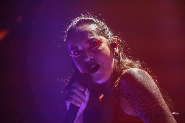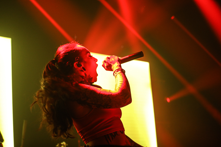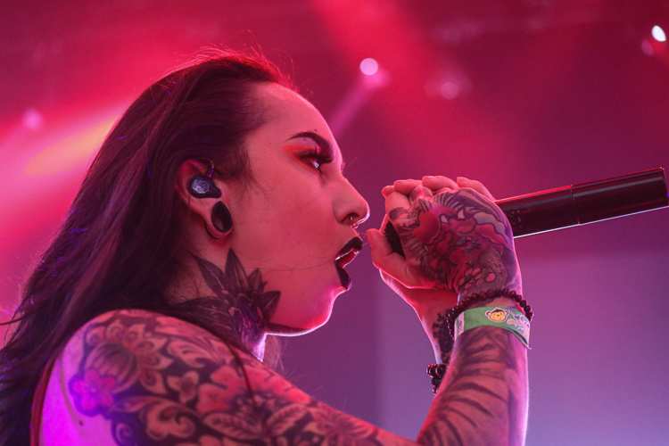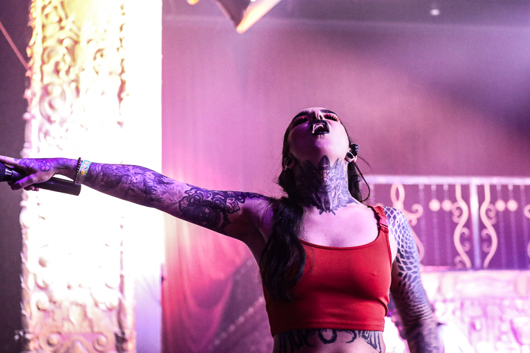 Jinjer Live at The Belasco Theater Los Angeles, CA October 30th, 2021 Review and photos by Travis Baumann Ukrainian metal-core band, Jinjer have quickly elevated to the top of my list of favorite bands to see live. The quartet featuring the amazing vocal talents of Tatiana Shmailyuk continue to capture hearts and minds around the globe on their meteoric rise. Jinjer form a juggernaut of power and energy on stage; from Roman Ibramkhalilov's unconventional guitar work, to Eugene Abdukhanov's chugging bass riffs, to Vladislav Ulasevish's unrelenting rhythms, the trio lay down the foundation for the voice of the band to weave her magic. Powerful to delicate as the situation calls for, Tatiana ranges from angelic and uplifting to deep guttural growls that pummel the listener into submission. Her stage presence is felt to the back of the room as she opens a portal to her soul and channels that magnificent energy out into the world at large. With the outbreak of the global pandemic in early 2020, this show seamed to be endlessly rescheduled with its initial date meant to be on my birthday (4/24), it then got moved to later that year, then aimed for spring of the next year and finally happened the day before Halloween in late 2021. In that time Jinjer were not idle, having produced another full length album, "Wallflowers" to bring to the masses once the tour was actually able to commence. The pandemic appears to be far from over however, as the virus struck the band early in the tour forcing their drummer to sit out a few dates but luckily for the sold out crowd in downtown Los Angeles, he is back behind the kit for this amazing show. The set list for this evening would focus heavily on the new release, but also include a number of songs from both their previous album and EP, "Macro" and "Micro" respectively. I was very happy they found room for one of my all-time favorite songs of theirs from "King of Everything" as well with "I Speak Astronomy". Tatiana spoke to the crowd in between songs with a big smile on her face, feeding off the incredible energy the crowd brought to the lavish old theater from a different era. She commented on how she used to be an extreme introvert and "Wallflowers" was written with those feelings and friends in mind. She said that as a band, they have had the opportunity to spend the last twelve years on many stages, growing in size as well as number, and that has helped her transform from recluse into the charismatic front woman that stands before us on this night. It was an amazing show. Each time I see them live I leave utterly impressed and empowered by the experience and cannot recommend checking out Jinjer highly enough. Set list: Call Me a Symbol On the Top Pit of Consciousness I Speak Astronomy Disclosure! Judgement (& Punishment) Sleep of the Righteous Ape Retrospection Perennial Teacher,Teacher Wallflower As I Boil Ice Mediator Colossus Vortex |