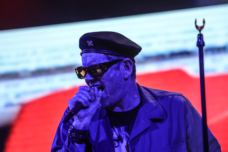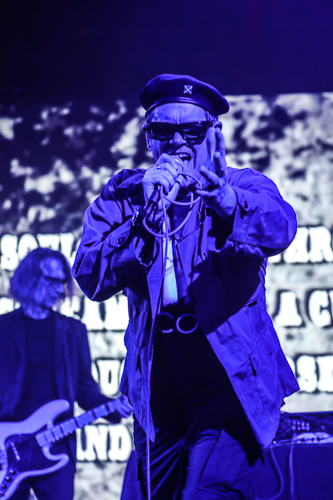Barker + Connelly : Luxapan Live at The Mayan Theatre Los Angeles, CA September 30th, 2021 Review and photos by Travis Baumann In the late 1980's and early '90's Wax Trax! Records was synonymous with industrial dark-wave music in its pioneering state, and in that stable of creativity a large group of musicians gathered and prolifically produced a load of side projects from their primary bands, many sprouting from the band Ministry. At the time Paul Barker and Chris Connelly were at the core of these projects, spawning such greats as Acid Horse, Revolting Cocks, and PTP to name a few. Many of these projects ended up being one-offs and never having any of the material featured in a live setting. Revolting Cocks was an exception that spawned a number of albums but at some point those "keys to the city", so to speak, were handed off to another group of musicians. Come around thirty-plus years later and the duo of Barker + Connelly have re-adopted the past era monikers of Luxa and Pan to bring some of these old gems to light in a live environment as one of the featured acts of this year's Cold Waves Festival. Breaking out the big guns right from the start they did the fan-favorite, "No Name, No Slogan" from Acid Horse. The song featured samples of both music and dialog from "The Good, The Bad, and The Ugly" film and utilized an industrialized western theme that was awesome to see live after all these years. Connelly announced that they were going to do some Revolting Cocks songs from "the last real Revolting Cocks" album, referring to the last one he was involved with before Al Jourgensen lent out the name to a new band who have not followed in the same vein as the original group. They did "Creep", The Rockabye" and "Sergio" from the RevCo catalog with Connelly reverting to his signature howls and screams. Paul moved between synths and programming to picking up his bass and coming out from behind his equipment to stand near Chris as they played. Chris is a pretty serious guy while Paul had a big smile on his face and sipped bottles of beer in between songs. A large video screen behind the duo showed colorful imagery that laid context to the songs, some of the pieces also featured the lyrics in time with Chris' verse. They finished up the set with the PTP (Programming the Pscyho-drill) material. "Show Me Your Spine" was featured in the Robocop movie and their backing footage was made up entirely of clips from the feature. The grand finale was "Rubber Glove Seduction" which I still have in the form of the cassette single back from when it came out while I was still in high school. It was a blast of nostalgic fun and great to see all of these songs live, most of them for the first time. It is also great to see Chris Connelly out doing industrial type stuff again which started with the last Ministry tour and I hope it continues. I wonder if Paul will ever join up with Al again for a dose of the old Ministry goodness. |
