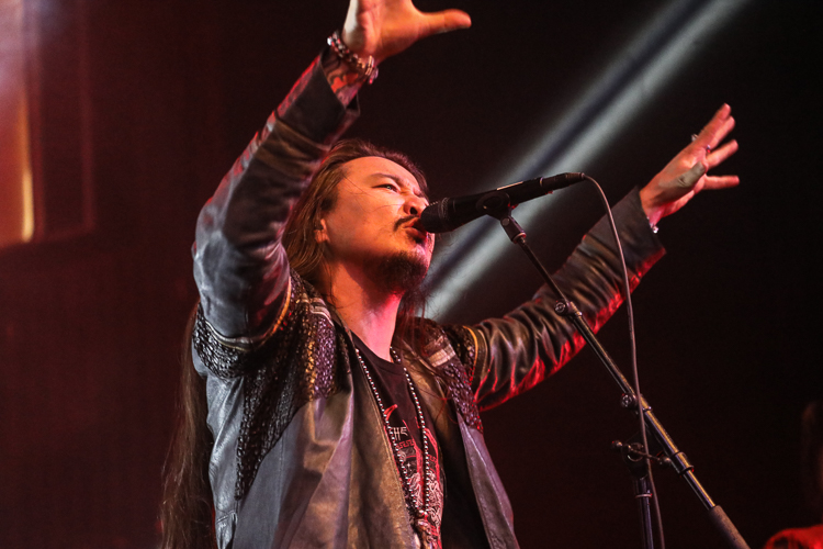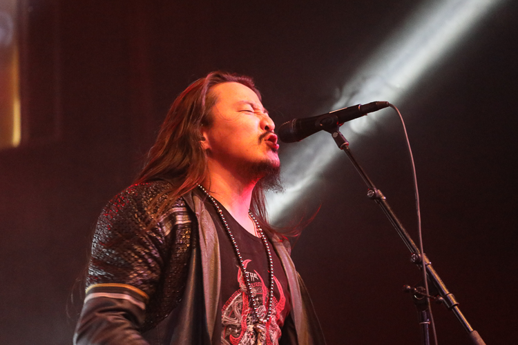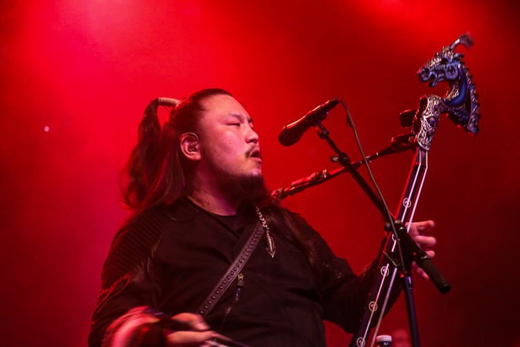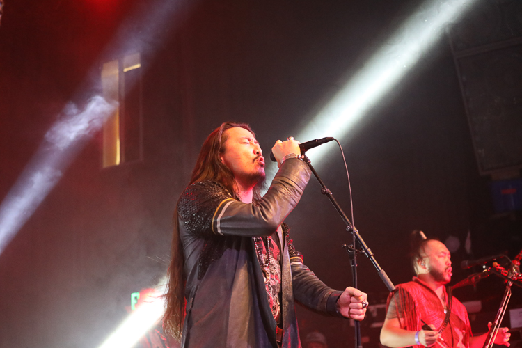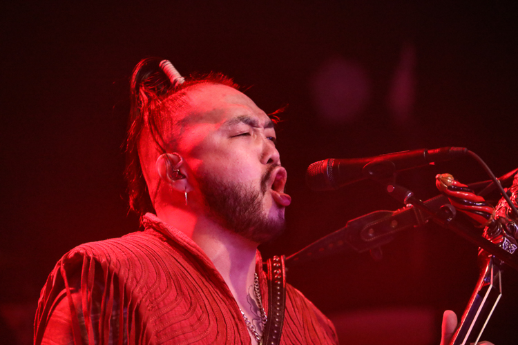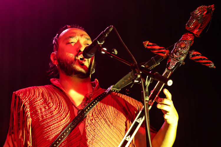 The Hu Live at The Elrey Theatre Los Angeles, CA October 31st, 2021 Review and photos by Travis Baumann The Mongolian hoard crashes onto American shores once more with "The Hun Tour". Playing Halloween night in Los Angeles, they packed the ornate theatre in the Miracle Mile district. Utilizing the Morin khuur, or "horsehead fiddle", as well as the Tovshuur, a Mongolian guitar, Tumur Khuur (jaw harp), flutes, and traditional percussion all infused with electric guitar and bass, as well as modern drums, The Hu bring a new edge to the thriving folk metal music scene. Based around a core quartet of talented musicians The Hu are made up "Gala" on lead throat singing and Morin khuur, "Enkush", playing lead Morin khuur and throat singing, "Jaya", on Jaw harp, tsuur (a Mongolian pipe instrument), flute, and throat singing, and "Temka", playing Tovshuur and backing vocals. This roster is expanded to a full eight man band for touring with "Jamba" on electric guitar and backing vocals, Batkhuu on bass guitar and backing vocals, "Ono" playing traditional percussion, jaw harp, and backing vocals, and finally "Odko" on a conventional drum kit. The most intense parts were when the entire band sang in unison with all of the combined traditional and conventional instruments lifting the power of the music even further. The set list was made up of a lot of new songs from their forthcoming second album and were largely unknown to the audience. The material ranged from raging head-bangers to much slower ballads with an almost country-western twang to the percussion. They mixed in enough fan-favorites from their debut album, "The Gereg", that the audience could sing along to the familiar anthems throughout the show. It was really an amazing performance as we have come to expect from these guys. The Hu bring all the trappings of modern folk metal but have their own take on it with unique instruments and language as well as thematics and vocal intonations. This show was a great way to spend All Hallows Eve to say the least. Set list: Shoog shoog Huhchu Zairan The Gereg Mother Nature The Legend of Mother Swan Uchirtai Gurav Shihi Hutu Shireg Shireg Bii Biyley Yuve Yuve Yu Wolf Totem Tatar Warrior Black Thunder This Is The Mongol Sad but True (Metallica cover) |