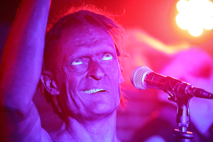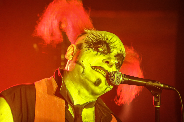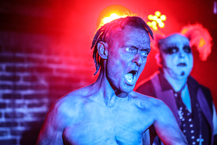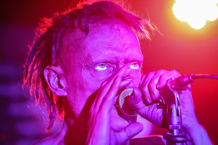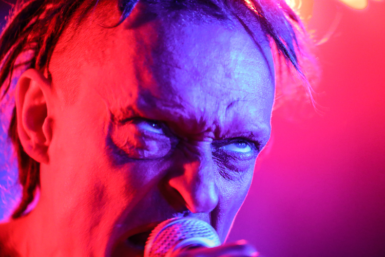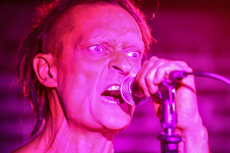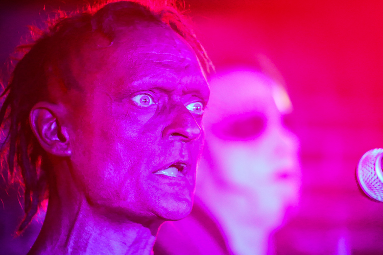 Das Ich Live at Los Globos Los Angeles, CA July 6th, 2018 Review and photos by Travis Baumann Legendary Gothic-electronic pioneers, Das Ich return from their homelands of Germany to bring a special presentation to the Los Angeles fans. For nearly thirty-one years the duo of Stefan Ackermann and Bruno Kramm have been performing intellectually challenging, dark electronic music. Das Ich played an intimate show in the Silverlake neighborhood of Los Angeles amongst a sweltering, record-breaking heat wave. Luckily Das Bunker was able to set this concert up in a club with sufficient air conditioning to not let the hellish climate affect the evening. I have seen Das Ich many times over the years but this was an anomaly of a show in that Bruno spoke at length to the audience in between songs about how the dark alternative scene was a nation in and of itself, without borders and without discrimination. He railed against the rising racism around the world, citing here in America, as well as in Germany, the UK and all around Europe and Scandinavia. Without naming the current president by name, Bruno said that he has no right to be against illegal immigration when he is an illegal earthling. Bruno spoke of the amazing events in Leipzig each year with the Wave Gotik Treffen festival and how this scene comes together through diversity with a common mind. He encouraged everyone to go out and vote and help shape our future. This was all in way of an introduction to their first new song in over twelve years that is based on the ego and all of us overcoming it to come together for a common love and interest. Bruno said that Germany is very excited and anticipating new material but that here in the U.S. we were the first to hear it. In addition Bruno spoke about how when he and Stefan had started the band over three decades ago that his German peers laughed at them and their "little Gothic project". No one realized the longevity that would come nor the place they would rise to in the underground community the world over, despite singing entirely in their native tongue. Bruno and Stefan said that after all of these years they are still very best friends and steadfast partners in their endeavor to communicate esoteric and intellectual concepts through their art. Das Ich played an extensive set list that contained all of their fan-favorite songs from throughout their extensive career, starting with "Die Propheten". For "Der Schrei", Stefan would reach the mic stand out into the crowd to get the audience to participate in screaming the song's namesake. Stephan is an extraordinary front man, utilizing extreme facial expressions and body contortions to emphasize the emotions and impact of the songs. Over the years, Bruno has provided more and more melodic vocals in tandem with Stephan's more sinister delivery which really brings an accessible, heart-felt element to these songs. They had an additional keyboard player, Damian “Plague” Hrunka, who also sang back up vocals on most songs. The set list continued to unfold with "Kannibale" followed by "Engel" and "Das Dunkle Land". A highlight of the set was definitely the new song, "Was Bin Ich?". In typical Das Ich verse, it can have a double interpretation, both meaning "What am I?" literally, but also in the Freudian meaning that the band's name implies, "What is Ego?". Giving the audience an epic show, the set moved on with "Schwarzes Gift", "Uterus", and "Kain und Abel". The small venue was packed up front as fans pushed to get near the duo as they performed "Des Satans neue Kleider" followed by the crowd favorite, "Re_animat". They finished up the main set with "Kindgott" before taking a short break. Cheering brought them back to the stage for one of my personal favorites, "Gottes Tod". The crowd sang along with the chorus while Stefan raised dual middle fingers to the heavens. Bruno said they had time for one more before they called it a night and made their way up to Seattle for the next night's show. The crowd screamed out requests but one resounded louder than the others and they finished the night with the awesome, "Destillat". It was a really great show that gave the audience a personal experience with the band as well as some new material, really cool to say the least. I highly recommend seeing these guys live, they are true artists like no other. |