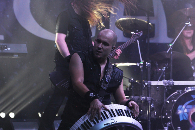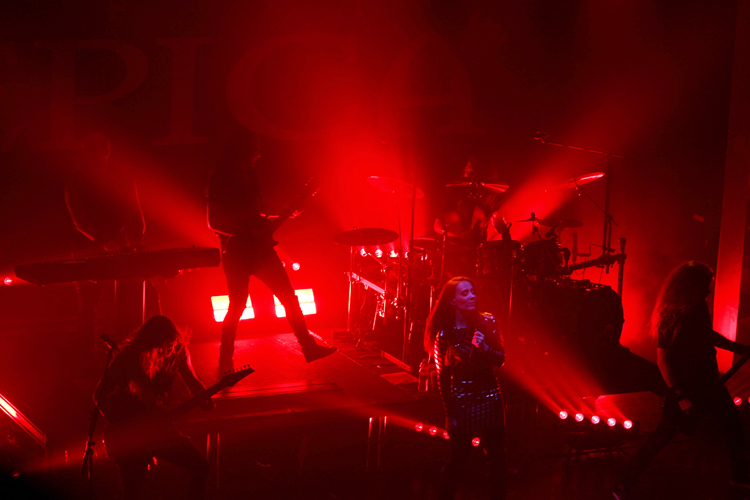 Epica Live at The Regent Theater Los Angeles, CA November 19th, 2016 Review and Photos by Travis Baumann If you are going to choose a name like Epica for your band, you better be able to live up to it. This group of Dutch artists absolutely live up to the moniker, and their live performances are powerful Symphonic Metal experiences at their best. The universe has conspired to keep them from playing Los Angeles for many years now, with canceled tours and family emergencies waylaying their return time and again. Finally they have made it to the West Coast and with a concert roster of fellow musicians that make a dream billing for those of us in the Metal scene. Opening bands including Fleshgod Apocalypse from Italia, Arkona from Mother Russia, and The Agonist from Canada set the tone for the evening before the sextet even set foot on stage. The audience reacted emphatically when Ariën van Weesenbeek took his place behind the drums and Coen Janssen stepped up to the keyboard on the risers at the back of the stage. They were soon joined by Isaac Delahaye on lead guitar, Rob van der Loo on bass guitar and band founder Mark Jansen on rhythm guitar. The cheering intensified when the beautiful Simone Simons came out, her gorgeous red hair shining in the stage lights and her tight metallic dress showcasing her fashion sense. She isn't just all killer looks however, as is immediately apparent the moment she opens her mouth and lets her angelic, operatic voice weave the esoteric tales that the band are known for. They started off the set with new material from their latest album, " The Holographic Principle" including the opening track, "Edge of the Blade" and "A Phantasmic Parade"; giving the audience a great dose of what we have been missing at the same time as treating us to something we have never seen live before. Simone said that it had been a very long time since they played for us and that the "Third time is a charm" in terms of attempts to perform in LA. She said that tonight, the set list would span songs from all over their career and with that they performed "Sensorium" from their debut release, "The Phantom Agony". Anxious to share their latest endeavor with the an enthusiastic audience, they returned to the latest album for two more awesome songs with "Universal Death Squad" and "Divide and Conquer". Epica hosts a rich and layered sound with two guitars building headbanging riffs, deep bass and blasting drums laying in bombastic percussion, and keyboards and orchestrations elevating the delivery to a grand affair. Simone's flawless, operatic delivery juxtaposes with Mark's deep growls, the two playing back and forth in a lyrical dance that mimics life's bipolar nature. They played one of my favorite songs of theirs next with "Storm the Sorrow" from the 2012 album, "Requiem for the Indifferent". Moving through their entire back catalog and touching upon each album they tapped "The Quantum Enigma" for an excellent rendition of "The Essence of Silence". Hitting another one of my all time favorite songs, they went back to the 2007 album, "The Divine Conspiracy" for "The Obsessive Devotion". While serving up plenty of fan favorites from older albums, they definitely kept the spotlight on the new album with another two back to back songs; "Ascension -Dream State Armageddon" and "Dancing in a Hurricane". They did a second song from their previous to latest album, "The Quantum Enigma" with "Unchain Utopia". They were nearly at a dozen songs for the evening and had not even hit the encore but it was time for the final song of the main set; the fittingly epic and uplifting "Design Your Universe" from the album of the same name. The band left the stage but the keyboard player, Coen quickly returned with an unusual portable keyboard that curved down like an upside down "U" slung around his neck. He bantered jovially with the audience before beginning an orchestrated solo piece. Before long Simone joined him and began the beautiful intro to "Sancta Terra" off of "The Divine Conspiracy". The rest of the band re-emerged and the song hit full strength with all the grandeur the band is known for. Giving the crowd one last taste of the new album, they played "Beyond the Matrix" from "The Holographic Principle". At this point, the night had grown long and there was only one album from their repertoire that they had not played anything from. They have a long history of ending their concerts with the title track from their sophomore release and it would be no different tonight. They finished up their immense set with the fan favorite, "Consign to Oblivion". It was an amazing show and well worth waiting all these years to finally see. Simone is like an angel in appearance and in voice and with the group of stalwart musicians that she has surrounding her, Epica is truly the pinnacle of this style of music and what a live performance is about. Hopefully we won't have to wait that long to see them next time. |
