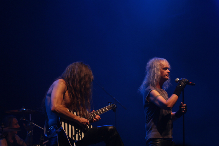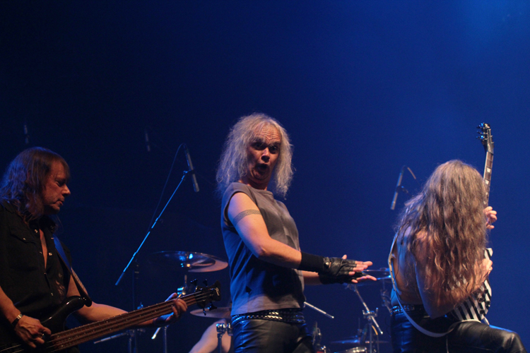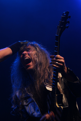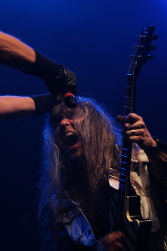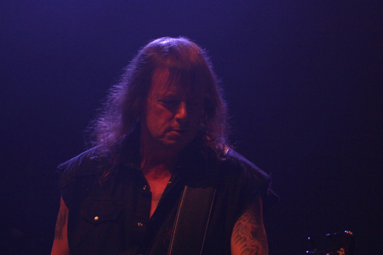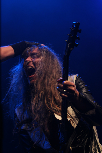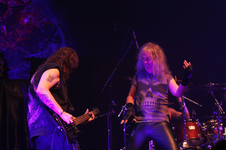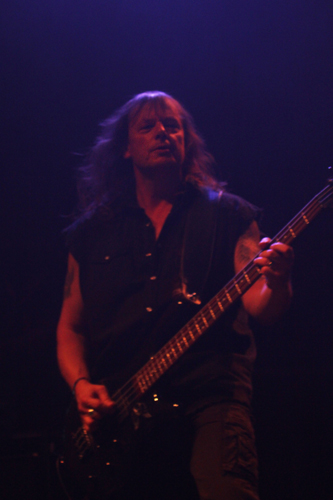 |  | Grave Digger Live at The City National Grove Anaheim, CA November 21st, 2015 Review and photos by Travis Baumann Grave Digger are a metal band hailing from Germany and have been putting out albums for over thirty years. Their style lies somewhere between speed, thrash, and power metal. The band is focused around founding member and vocalist Chris Boltendahl whose signature gravel voice and thematic lyrics make Grave Digger stand out from their contemporaries in European heavy metal. They have just released their seventeenth studio album with "Return of the Reaper" and are touring North America in promotion of it as well as special guests of fellow Germans, Blind Guardian. I have been a fan of theirs for over seven years now, and as far as I can recall, this is their first US tour in that time. I got hooked on them with their "The Clans Will Rise Again" release, which took a moving introspective look at Scottish history and conflict and was a really great album. Since then, they have put out solid release after release and I was excited to see them perform live. They started off the set with a song off their very first release, "Heavy Metal Breakdown", with "Headbanging Man". The crowd was enthusiastic and the sound was spot on. They traveled mid-way through their career for their second song, "The Round Table (Forever)" from their "Excaliber" album, which came out in 1999 and was a big hit with the audience. Keeping the old time fans sated with early material, they played "Witch Hunter" off of their sophomore release of the same name. They moved forward in time for "Ballad of a Hangman" from the 2009 release of that name, before landing on a song from the new album. They chose "Season of the Witch", which is easily my favorite song off of the "Return of the Reaper" and it was awesome live. Returning to the "Excaliber" release for the title track off that album, they then did another new song with "Tattooed Rider" from their latest release. Chris mentioned how good it was to be in Southern California and how great the weather was, perfect for a motorcycle ride. They hit upon another of my favorite songs of theirs with "Highland Farewell" from "The Clans Will Rise Again", and then followed that up with a double dose of Scottish themed metal anthems with "Rebellion (The Clans Are Marching)" from the 1996 seminal album "Tunes of War". They finished out the night with the title song from their debut release, "Heavy Metal Breakdown" which got everyone in the audience singing along for what turned out to be a very extended version of the song. It was a great show and I was really happy with the overall set list. They have so much material, it was interesting to see the pieces that they picked and the albums they decided to skip over entirely. I would love for them to come again so we can get a more extended experience into that vast catalog, but all in all I was very happy with what we got to see. | ||||||