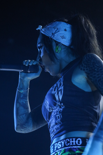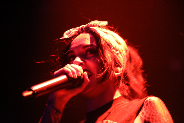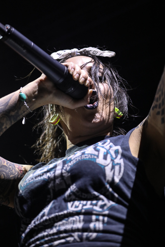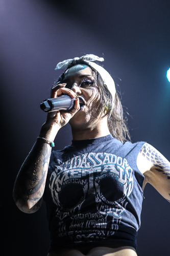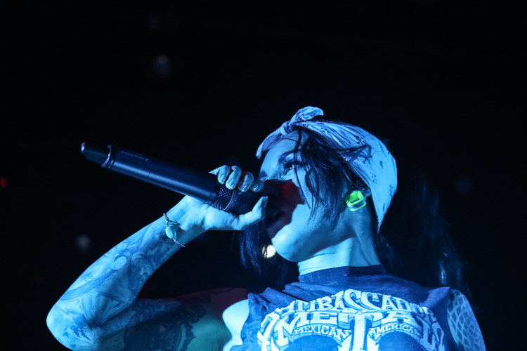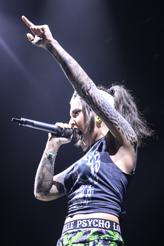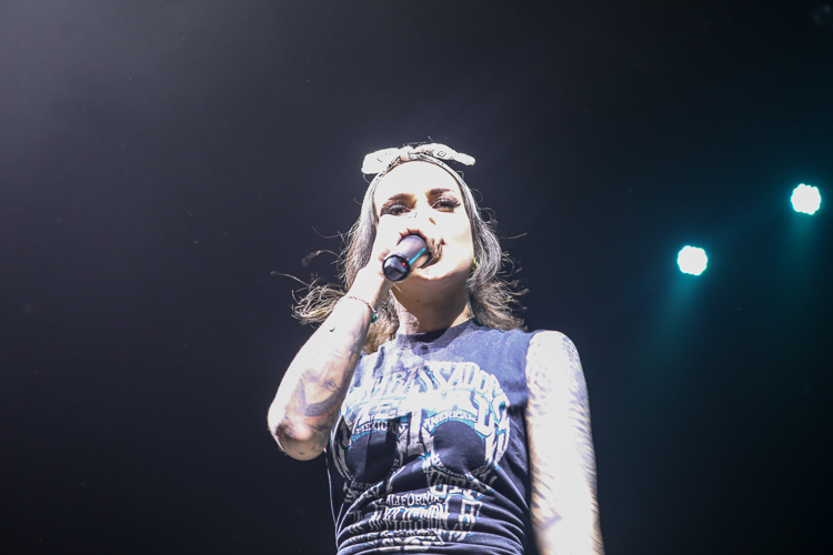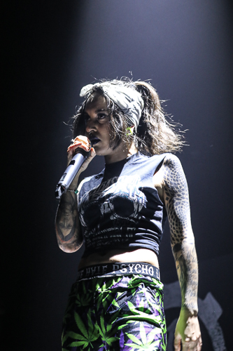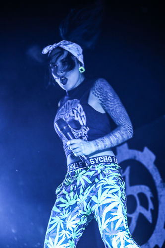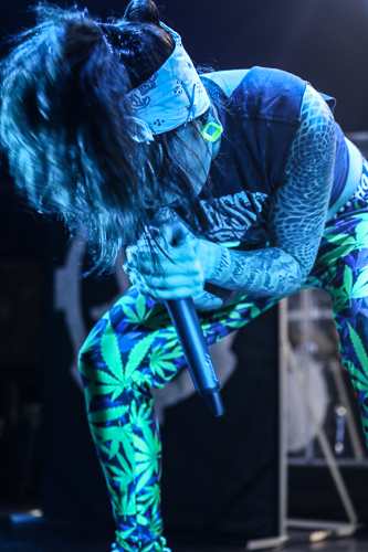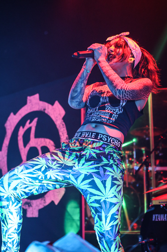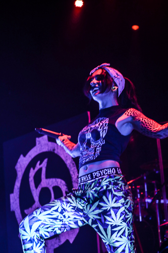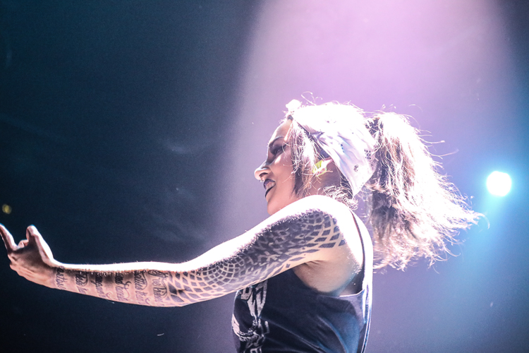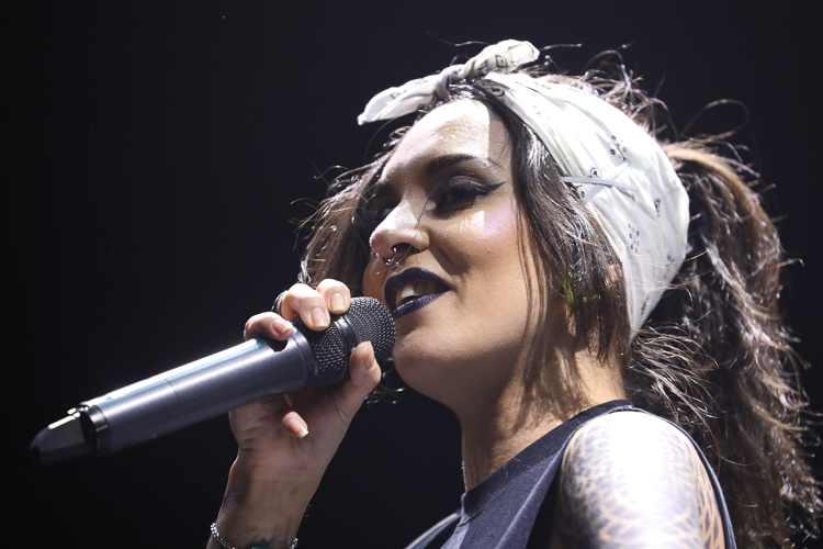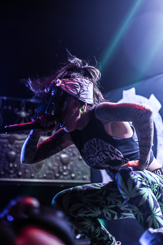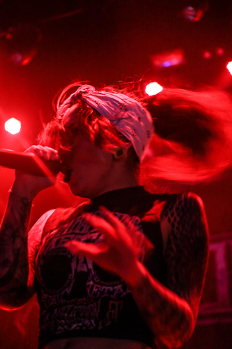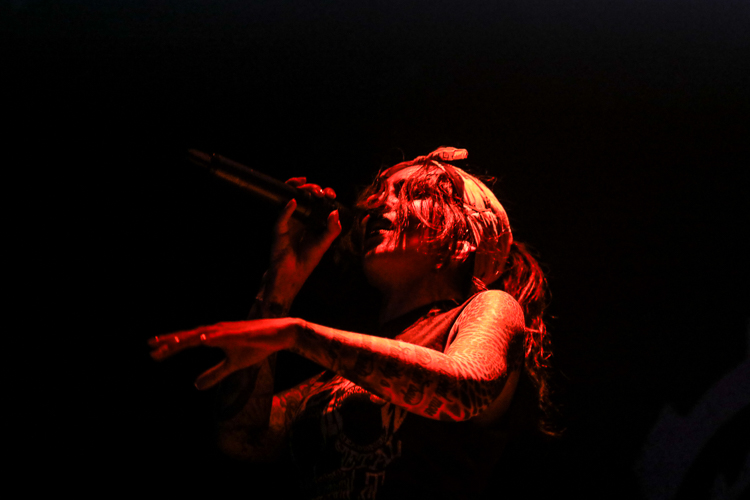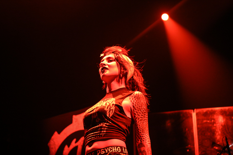 Jinjer Live at the Belasco Theater Los Angeles, CA April 19th, 2018 Review and photos by Travis Baumann Jinjer are a progressive death metal band hailing from the Ukraine. They debuted in 2009 and have put out three albums since then, their latest being "King of Everything". This is their first North American tour and since having first discovered them, I have been looking forward to seeing them perform. Jinjer feature a very heavy bass guitar driven sound with chugging riffs where even the guitars form percussive blasts. They are bordering on djent at times and also bring to bear metalcore and nu-metal influences. They introduce elements of jazz, R&B, and other progressive styles as well, especially in the vocals which are executed flawlessly by Tatiana Shmaylyuk. Tatiana ranges from beautiful soaring melodies to soul crushing growls and snarls at the drop of a hat, yet retains her own signature sound that allows here to stand with - yet apart from her peers such as Angela Gassow and Alissa White-Gluz. Joining Tatiana on stage are Roman Ibramkhalilov on guitar, Eugene Abdiukhanov on bass guitar, and Vlad Ulasevich on drums. These three gentleman combine their talents to build a formidable wall of sound that had the crowd headbanging and moshing to their heavy onslaught. They started off the set with "Who's Gonna Be the One" from the "Cloud Factory" album which was originally released in 2014 but was just re-released on Napalm Records. They followed that up with "Words of Wisdom" from "King of Everything". "Sit Stay Roll Over" came from that same album and lead up to what is probably their biggest hit partly due to an amazing music video, "I Speak Astronomy". Tatiana moved about the stage non-stop as she fluctuated between beautiful melodic vocals and deep extreme vocals that are on par with the best in the business. She sported weed-leaf covered athletic pants and a tight half-shirt as she bobbed and jumped around. They continued the set with "Just Another" followed by "Pisces". Jinjer were touring with Cradle of Filth and it was hard to say how many fans at the sold out show came for or even knew about Jinjer prior but they definitely won over the crowd. People were enthusiastically pumping fists, jumping up and down, or moving in the circle-pit to every song. "I Want It, I'll Get It" does not appear on any of their releases so far so is either a new song or a cover I didn't recognize. "Captain Clock" from "King of Everything" led into "Outlander" from "Cloud Factory" which brought the set to its closing number, the single "No Hoard of Value". It was a great set, especially for a supporting act on their first North American outing. I have listened to Jinjer for a number of years now and have been anticipating seeing them live, they certainly did not disappoint. The methodical, driving heaviness of the music combined with Tatiana's unique personality and diversified vocal delivery was definitely awesome and worth checking out. |