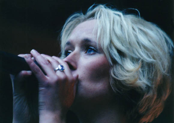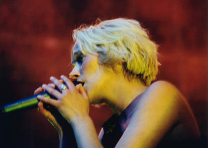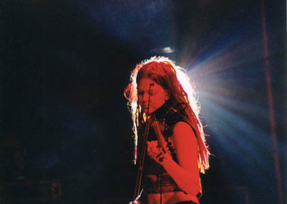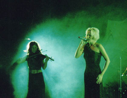 The group came out to tremendous response from the crowd. The lead singer looked gorgeous in a long, slinky evening gown that sparkled and showed off her figure. She had short blond hair and went barefoot. The violinist/ flute player was another beautiful woman, more earthy than the lead singer with long brown hair and a smile that revealed she was enjoying playing for us as much as we enjoyed the music. The keyboardist and drummer each sported shaved heads and were rather hidden behind their instruments.