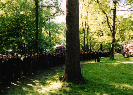 The above photo is one of the lines of goths that filled Leipzig for the 2001 Wave-Gotik-Treffen four day festival. This is Parkbühne in 2001 as people tried to see Sanguis et Cinis followed by Christian Death, Das Ich, and Illuminate later that day.