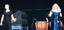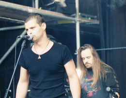 The two vocalists alternated singing and at times joined their voices making a very melodic, enjoyable listening experience. Mostly Weltenbrand plays slower, beautiful gothic pieces that are very soothing and inspiring. Their stage show was not elaborate but they put on a good performance and definitely encouraged me to go out and buy their CDs.