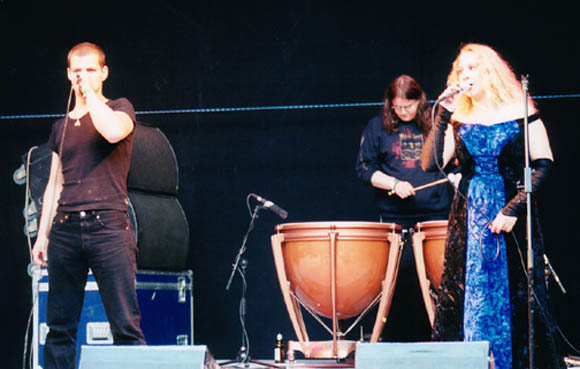The female vocalist wore a nice blue evening dress that had a renaissance or medieval flare to it and the male vocalist wore a clean, black outfit. They opened with a track I had from a goth compilation CD which consisted of a lot of cool chanting and keyboards and drums that lent to an epic scale.